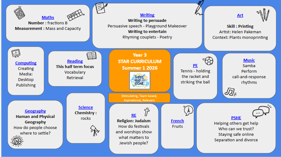 Being the first year group in Key Stage 2 (Juniors), this is the year where children get used to new routines and new ways of learning. We put all our knowledge learned in the Infants and are ready to grow in resilience and show a more mature attitude towards our learning, but we still try and be playful in everything we do!